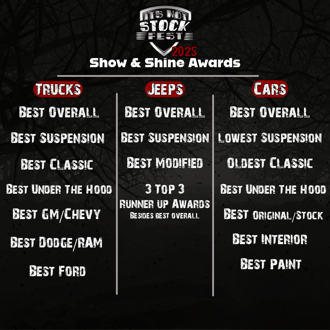 Awards will be announced for cars, jeeps and trucks in their separate categories!